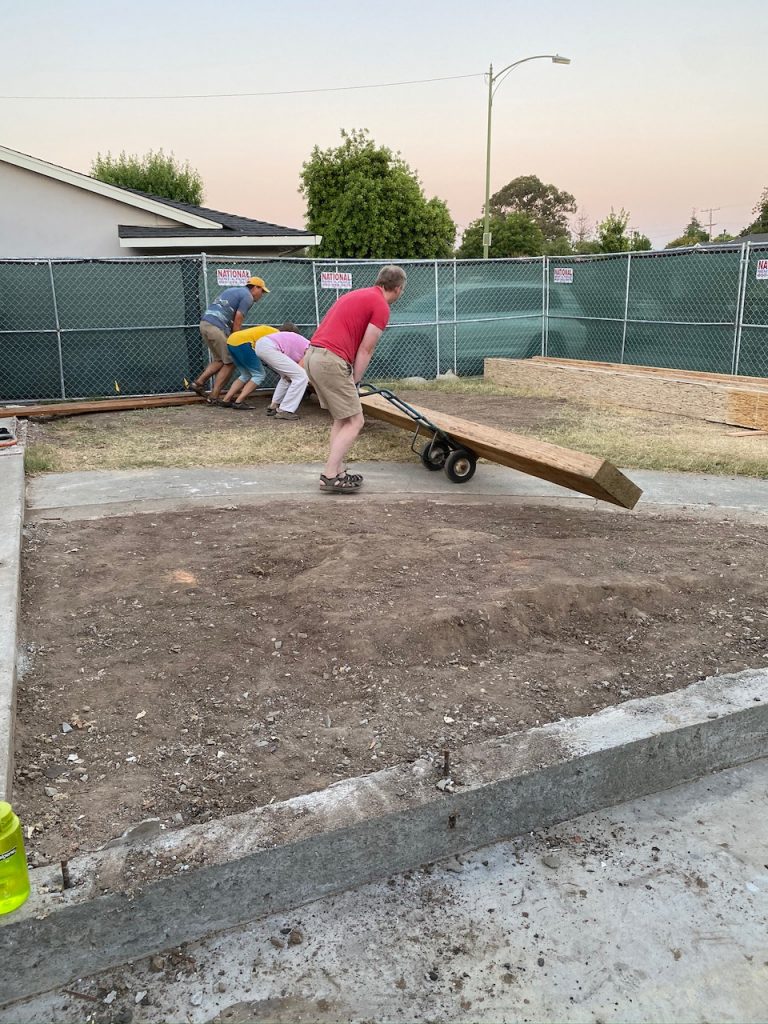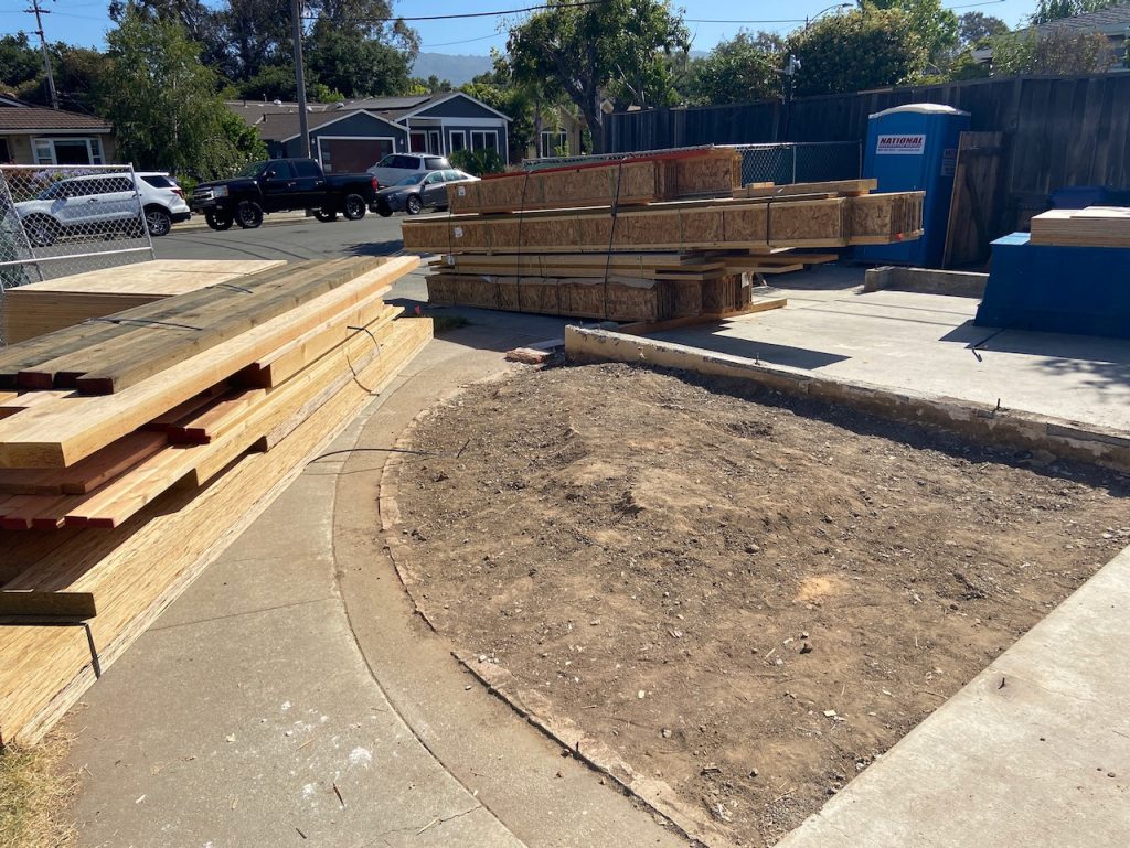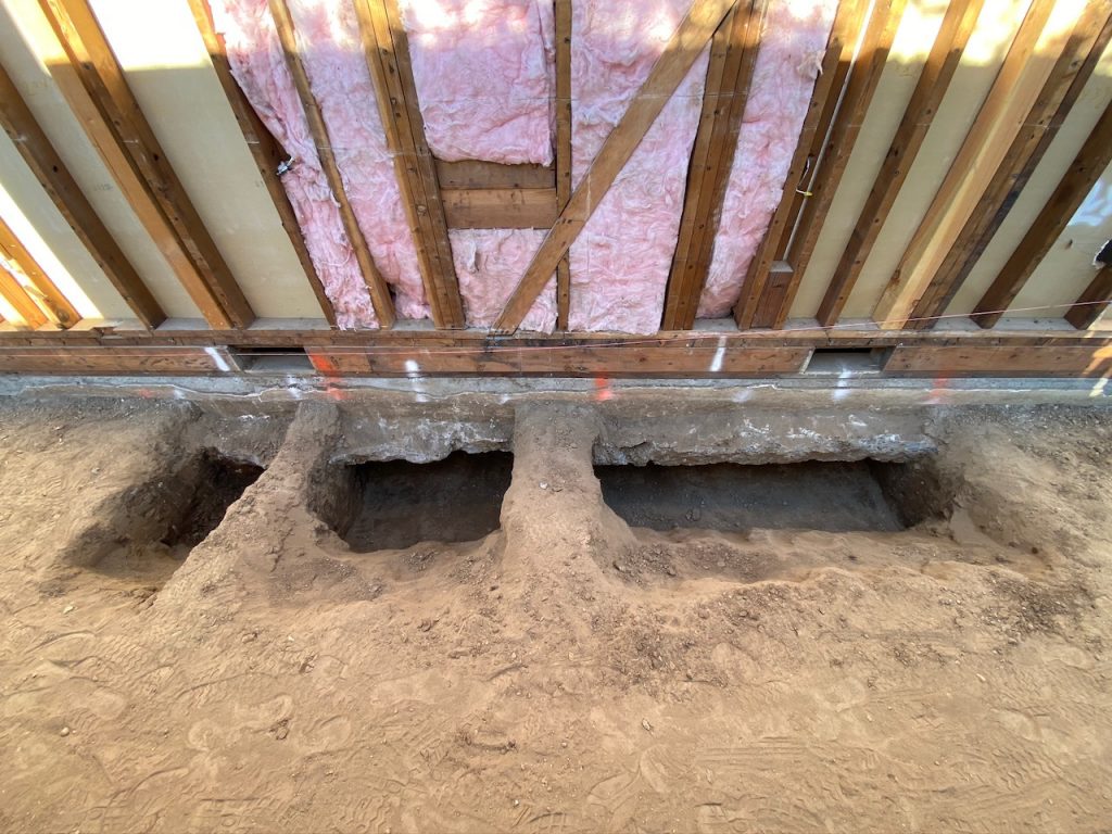 - Concrete work starts – removed old garage floor, dug holes for additional footings for second story support