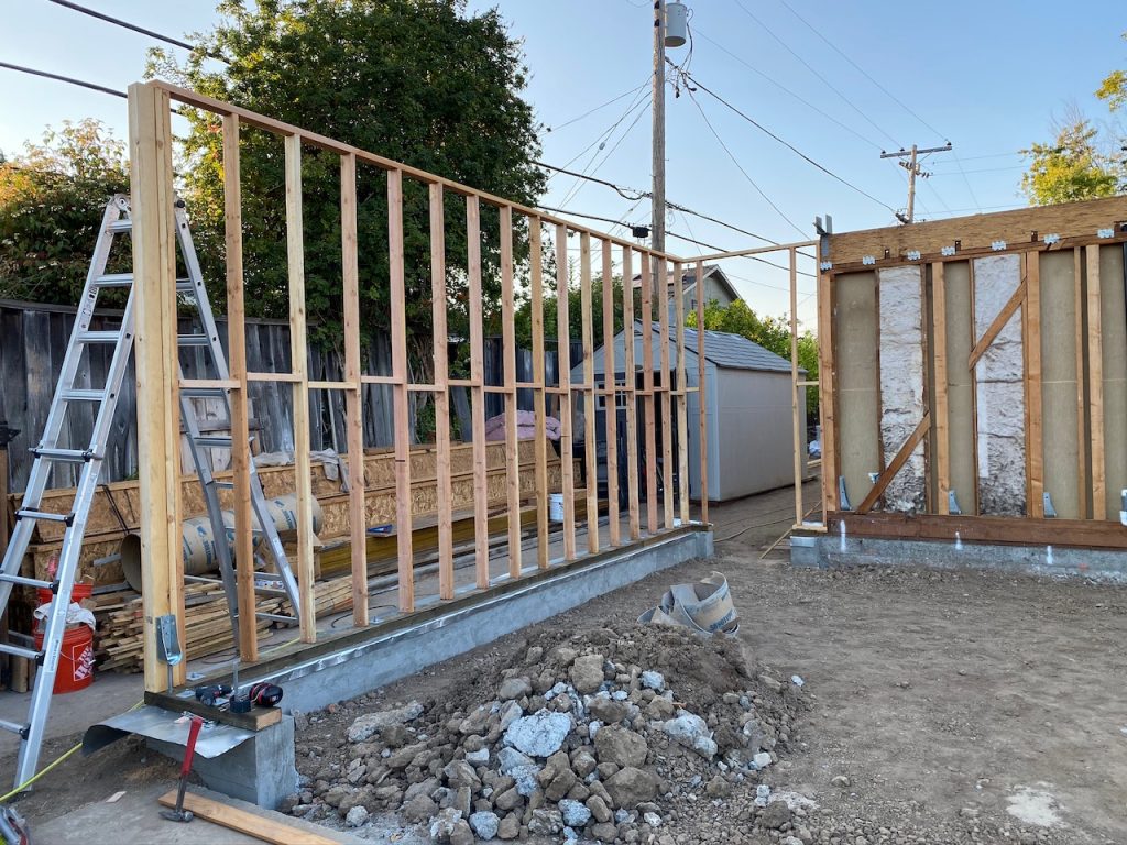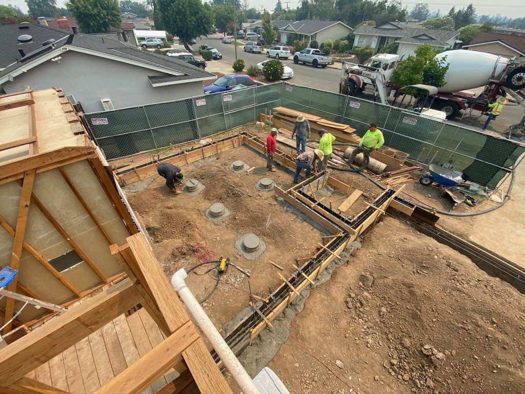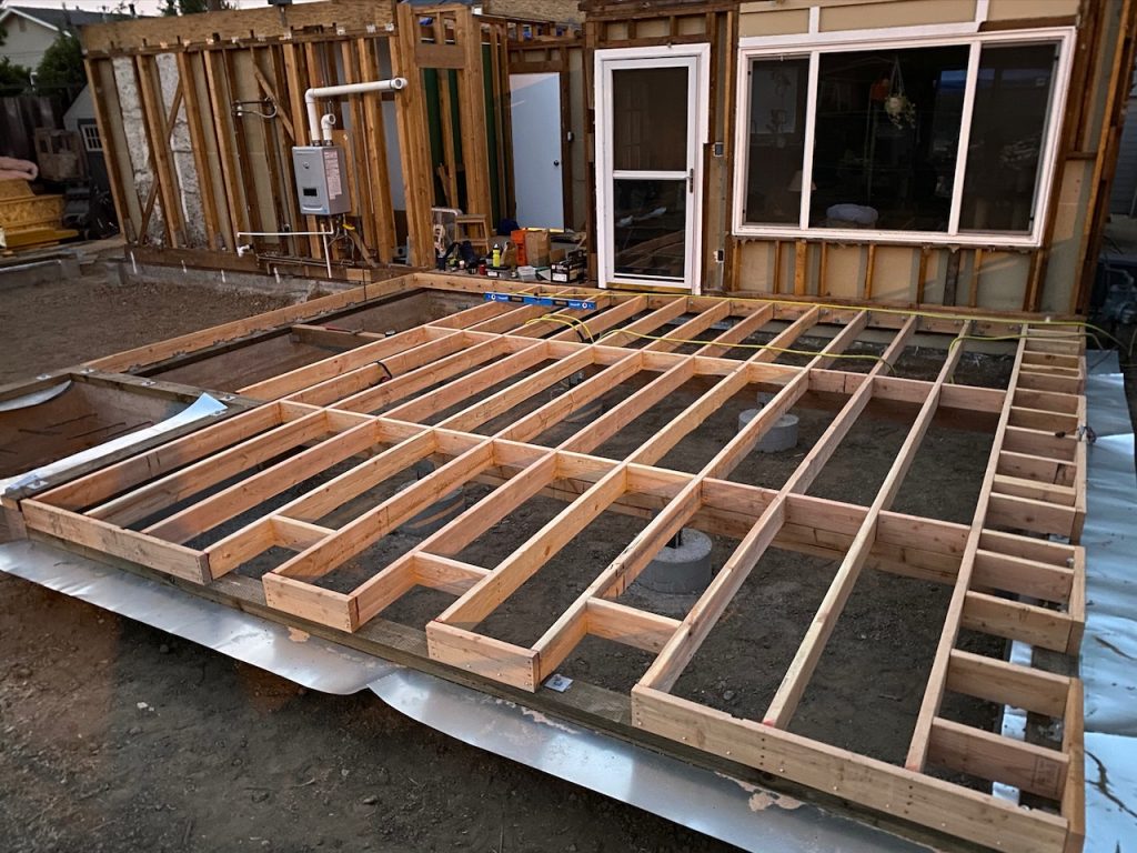 - Termite flashing, mud sills, girders and floor joists built for front addition