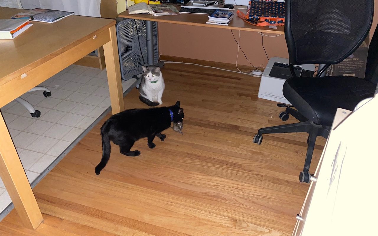 - One of the cats successfully caught and killed a rat that got in through a small hole in the floor that hadn’t been patched yet